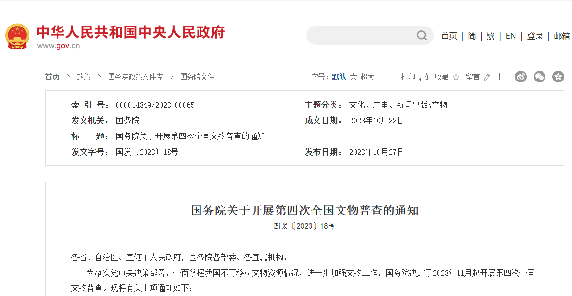 新中國成立以來,我國已開展過三次全國文物普查。2007年至2011年,第三次全國文物普查(以下簡稱“三普”),全國共登記地上、地下、水下不可移動文物766722處。黨的十八大以來,習(xí)近平總書記高度珍視歷史文化遺產(chǎn),明確要求“要建立健全歷史文化遺產(chǎn)資源資產(chǎn)管理制度,建設(shè)國家文物資源大數(shù)據(jù)庫”。開展第四次全國文物普查,是貫徹落實(shí)習(xí)近平總書記重要指示批示的重要措施。將我國境內(nèi)地上、地下、水下,人類創(chuàng)造的或者與人類活動有關(guān)的,具有歷史、藝術(shù)、科學(xué)價(jià)值的物質(zhì)文化遺產(chǎn)作為普查對象,通過普查明確全國不可再生、不可替代的不可移動文物資源總量。根據(jù)國務(wù)院《關(guān)于開展第四次全國文物普查的通知》國發(fā)〔2023〕18號文件,于2023年11月起開展第四次全國文物普查,落實(shí)黨中央決策部署,全面掌握我國不可移動文物資源情況,進(jìn)一步加強(qiáng)文物管理工作。