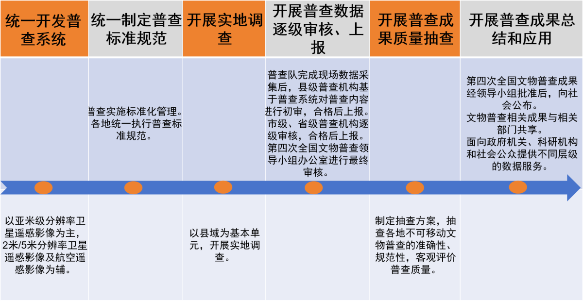統(tǒng)一開發(fā)普查系統(tǒng),充分利用三普、各類文物資源專項(xiàng)調(diào)查等已有成果,合理應(yīng)用文物保護(hù)管理工作基礎(chǔ)和先進(jìn)技術(shù),采取國家整體控制和地方實(shí)地調(diào)查相結(jié)合的方法,準(zhǔn)確查清全國每一處不可移動文物基礎(chǔ)信息,經(jīng)縣級、市級、省級、國家逐級檢查合格后,匯總建立全國不可移動文物資源大數(shù)據(jù)庫,在此基礎(chǔ)上開展普查成果匯總分析等工作。